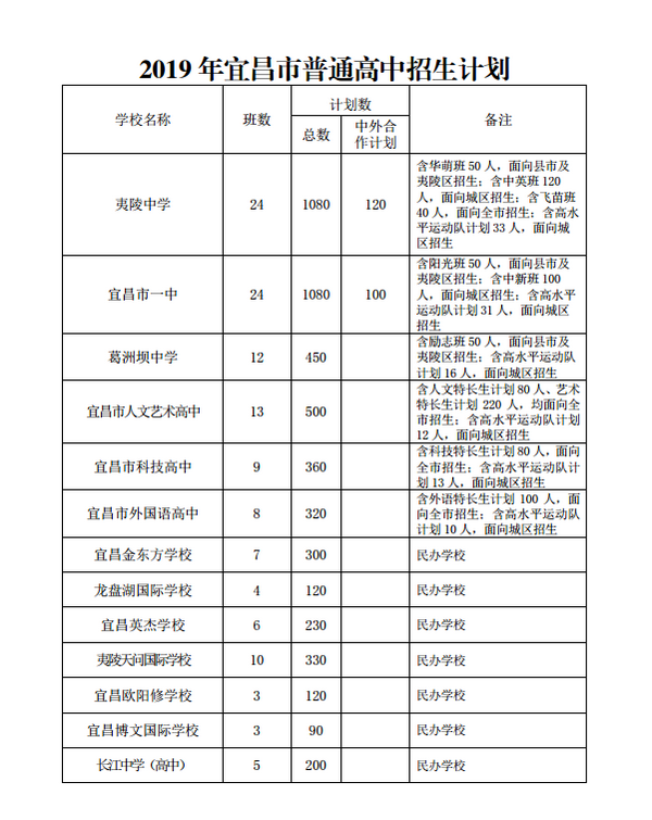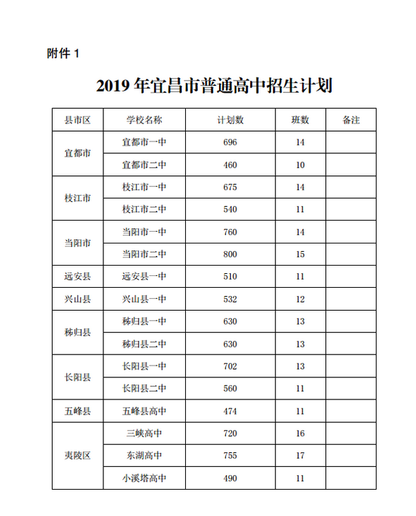 附件:1.2019年宜昌市普通高中招生计划