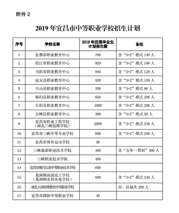 2.2019年宜昌市中等职业学校招生计划