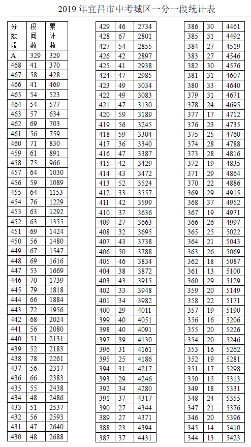 2019年宜昌市城区普通中考一分一段表
